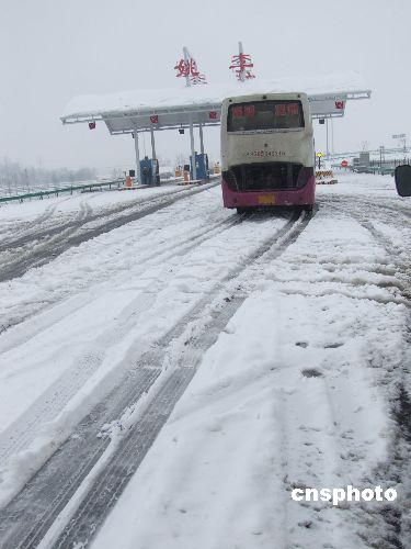 1月20日,安徽六安境內合六葉高速公路關閉,一輛客車滯留在收費站口。該市連日普降中到大雪,南部山區(qū)局部暴雪。降雪已造成該市各縣區(qū)普遍受災,山區(qū)縣災情比較嚴重。目前尚未有人員傷亡報告,全市各縣區(qū)正組織干部群眾全力抗災救災。中新社發(fā) 曉遠 攝