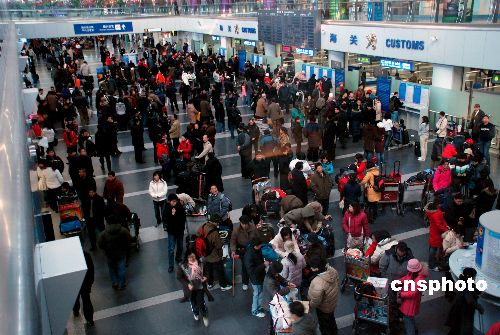 1月24日,2008年全國春運(yùn)已全面啟動(dòng),公路、民航客流穩(wěn)步上升,鐵路客流有所回落。圖為北京首都機(jī)場2號(hào)航站樓等待航班的旅客。中新社發(fā) 楊慧峰 攝