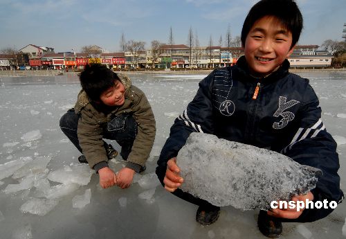 1月24日,京杭運(yùn)河節(jié)制閘堤岸出現(xiàn)冰凍。據(jù)氣象部門披露:自1月20日以來,山東棗莊普降小到中雪,氣溫降到零下4-5℃左右,最低氣溫達(dá)零下8.2℃,京杭運(yùn)河山東臺兒莊航道、運(yùn)河節(jié)制閘內(nèi)出現(xiàn)多年未有的淌凌和冰凍,最厚冰層接近8厘米。中新社發(fā) 高啟民 攝