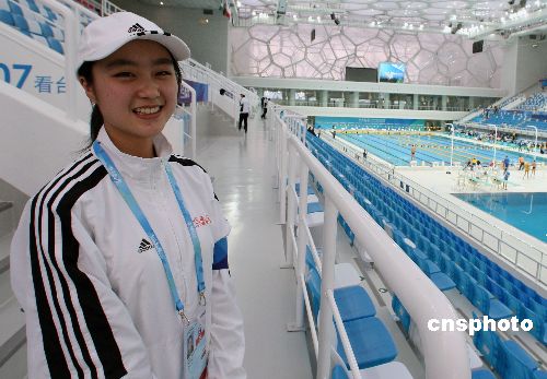 1月29日北京天寒地凍,剛剛完工的北京奧運會游泳場館——國家游泳館(水立方)內溫暖如春,主要由清華大學學生組成的數(shù)千名志愿者在靚麗柔美的游泳館“上崗”,迎接1月31日開始的中國游泳公開賽。中新社發(fā) 任晨鳴 攝