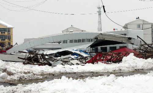 1月29日,安徽合肥經(jīng)濟(jì)開發(fā)區(qū)一加油站因不堪暴雪重負(fù),轟然倒塌,目前救援工作正在進(jìn)行中。中新社發(fā) 成展鵬 攝