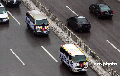 1月30日上午,長沙民眾送別在雪災(zāi)中因除凍搶修電路殉職的湖南三位電力員工。據(jù)悉,三位烈士于1月26日在長沙電廠至沙坪變電站五百千伏線路上人工除冰時(shí),因線路覆冰太厚、鐵塔不堪重負(fù)從50余米的高空墜地,周景華當(dāng)場(chǎng)殉職,羅海文、羅長明被緊急送往醫(yī)院后搶救無效身亡。正在湖南視察雪災(zāi)災(zāi)情的國務(wù)院總理溫家寶29日專程看望了烈士家屬。