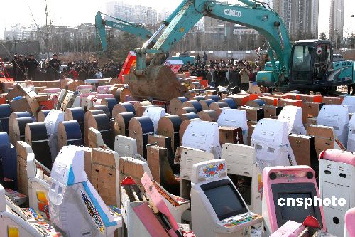 1月30日,中國農(nóng)歷鼠年春節(jié)前夕,河南洛陽警方公開銷毀2367臺(tái)游戲賭博機(jī)。1月下旬,河南省洛陽警方開展“利劍一號(hào)”行動(dòng),嚴(yán)厲打擊利用電子游戲機(jī)賭博違法犯罪活動(dòng),此次行動(dòng)中查處利用游戲機(jī)違法賭博場(chǎng)所156家。