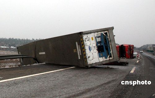 一場五十年罕見的陰雨雪冰凍災(zāi)害天氣已導(dǎo)致江西省連日發(fā)生了多起車禍?zhǔn)鹿剩?月23日以來發(fā)生了三起重大交通事故,導(dǎo)致十三人死亡。圖為31日江西省梨溫高速公路上兩輛大型客車相撞側(cè)翻。中新社發(fā) 吳慶才 攝