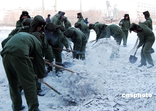 發(fā)表評論 1月31日,解放軍官兵和交警在鏟除路面積雪。自1月12日以來,持續(xù)不斷的降雪、冰凍氣候,給河西走廊中部的甘肅臨澤縣人民生產(chǎn)生活和交通安全造成了嚴(yán)重影響。災(zāi)情發(fā)生后,當(dāng)?shù)攸h委政府積極采取多項措施,清除冰雪,確保道路交通安全暢通。中新社發(fā) 李自明 攝