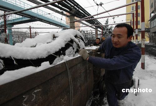 2月1日,職工在搶運(yùn)各種井下生產(chǎn)所需材料。罕見的高強(qiáng)度降雪連續(xù)突襲江淮大地。入冬以來(lái),作為國(guó)有重點(diǎn)煤礦的安徽淮北桃園煤礦積極克服雪災(zāi)給安全生產(chǎn)帶來(lái)的不利影響,精心組織原煤生產(chǎn),全力保證電煤正常供應(yīng)。 中新社發(fā) 任兆勁 攝