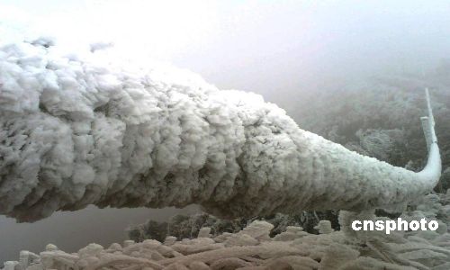 中國廣西最近遭遇嚴(yán)重雨雪冰凍災(zāi)害,電力、通訊設(shè)施受到嚴(yán)重影響,圖為中國移動廣西公司在柳州市融安縣一個超負(fù)荷的移動光纜被冰雪凍結(jié)。中國移動廣西公司已啟動最高等級應(yīng)急通信方案,全力保障通信網(wǎng)絡(luò)暢通,向重災(zāi)區(qū)提供信息發(fā)布綠色通道和延遲停機(jī)等服務(wù),為抗災(zāi)救災(zāi)提供通信保障。中新社發(fā) 申蓓 攝