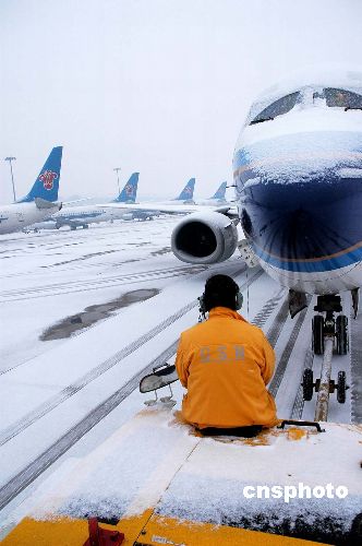 中國南方遭遇罕見的冰雪災(zāi)害,中國南方航空公司六萬員工目前正奮戰(zhàn)在冰雪一線。中新社發(fā) 郭軍 攝