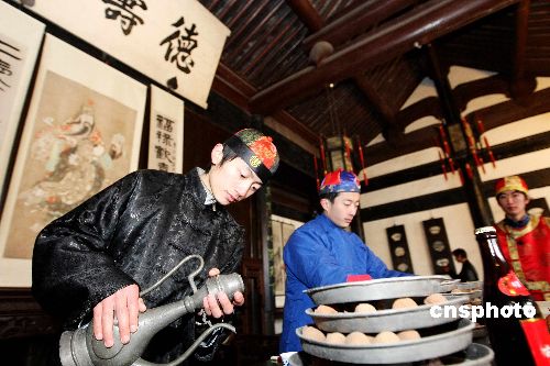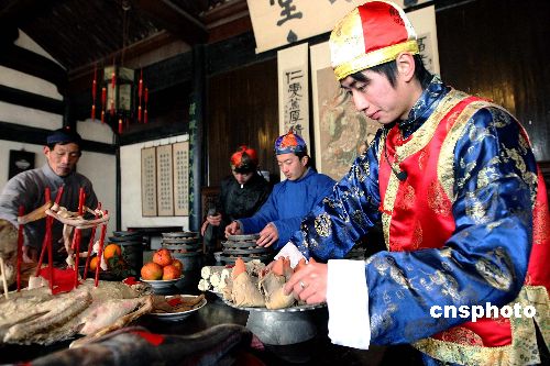 2月8日,紹興魯迅故里舉行“祝!奔漓牖顒。當(dāng)日是農(nóng)歷正月初二,浙江紹興魯迅故里在周家老臺門模仿魯迅小說《祝!返膱鼍埃瑥恼鲁跻恢脸跷迕刻爝M(jìn)行紹興傳統(tǒng)年俗“祝!眻鼍氨硌。紹興的年俗“祝福”因魯迅小說而名揚天下,浙江省將紹興魯迅故里“祝!倍槲┮坏拇汗(jié)保護示范地。中新社發(fā) 袁云 攝