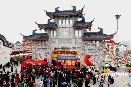 2月7日,2008南寧青秀山如意坊納福迎祥大廟會(huì)在青秀山大門前的如意坊古商城舉行。廟會(huì)以祈福南寧、祝福市民為主題,以文化展示文藝表演為依托,廟會(huì)上,民俗表演、美食、經(jīng)貿(mào)、游藝等活動(dòng),吸引了眾多游玩的人們。中新社發(fā) 彭寰 攝