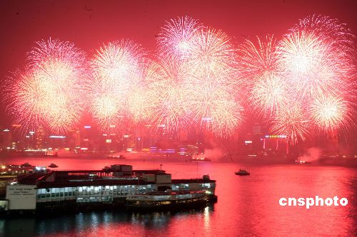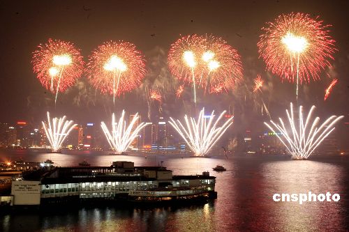 二月八日,農(nóng)歷新年初二,香港維港上空賀歲煙花絢麗璀璨。據(jù)介紹,主辦單位動(dòng)用四艘躉船發(fā)放煙花,制造出長(zhǎng)一千米、高三百米的“煙花屏幕”,是歷年來最大型的煙花匯演。煙花匯演上演十幕,歷時(shí)二十三分鐘,其中“北京”字樣的煙花更是頭一次在香港發(fā)放。警方估計(jì)有四十萬人在維港兩岸觀賞。中新社發(fā) 王麗南 攝