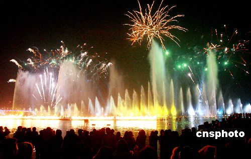 圖:蘇州金雞湖新春上演水上焰火與音樂噴泉