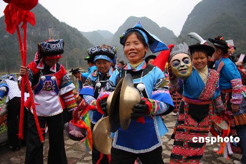 發(fā)表評論 2月8日,大年初二,貴州省興義市間歇泉民族村布依族、苗族風(fēng)情演出隊在表演自編自導(dǎo)的民族舞蹈。當(dāng)日,貴州省興義市間歇泉民族村村民自發(fā)在村里組織了一臺自編自導(dǎo)的民族風(fēng)情表演及體育活動,拉開了山寨鬧新春,迎奧運的序幕。中新社發(fā) 韋波 攝