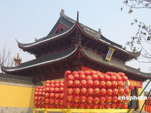 2月9日,6組造型別致的“巨型鼓燈”亮相蘇州市重元寺。每一組“巨型鼓燈”均由130只紅燈籠組成,給新春佳節(jié)增添了濃濃的喜氣。中新社發(fā) 李俊鋒 攝
