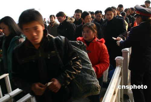 發(fā)表評論 2008年2月11日,春節(jié)長假接近尾聲,人們紛紛踏上返程路,有的回家,有的奔赴工作崗位。南京火車站因此迎來春節(jié)后的客流高峰。中新社發(fā) 阿董 攝