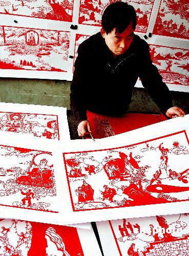 2月14日,河南鄭州高新區(qū)石佛村農(nóng)民黃建軍展示自己歷時(shí)4年制作的、總長(zhǎng)約160米的《西游記》巨幅連環(huán)畫(huà),并準(zhǔn)備將其獻(xiàn)給2008年奧運(yùn)會(huì)。據(jù)了解,該連環(huán)畫(huà)由210張畫(huà)組成,故事取材于西游記原著,每個(gè)章節(jié)最多用7到8張來(lái)表現(xiàn),從2003年開(kāi)始創(chuàng)作,耗時(shí)約4年,僅起稿就花費(fèi)近1年半時(shí)間,每張要“剪”兩三天的時(shí)間。中新社發(fā) 馬健 攝