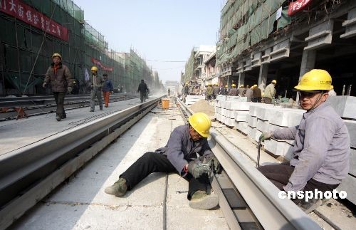 北京前門當(dāng)當(dāng)車鐵軌開始鋪設(shè)