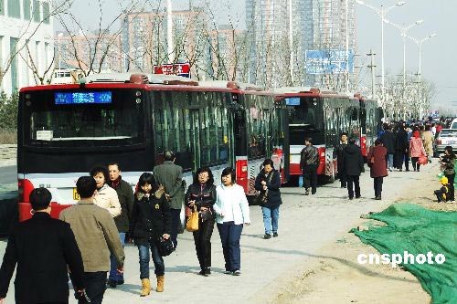 2月20日,為方便跳水世界杯比賽期間北京市民到中國國家游泳中心“水立方”觀賽,北京公交集團(tuán)第三客運分公司、新奧客運分公司分別開辟兩條直達(dá)比賽場館的“好運北京專線”。該專線線路的首站為新街口豁口,末站國家游泳中心,全程10.75公里。中新社發(fā) 鄭雄增 攝