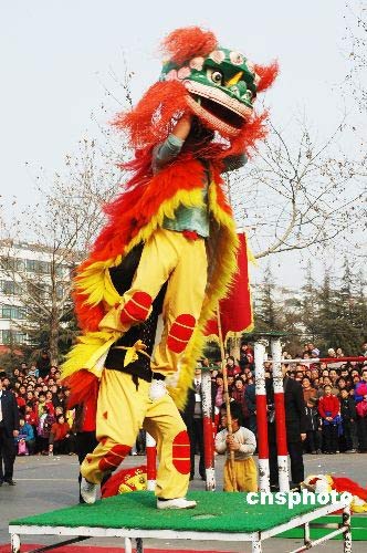 2月20日,山東淄博周村區(qū)舉行元宵節(jié)民間藝術(shù)文藝匯演,震天的鑼鼓、歡快的秧歌、威武的獅子、翻飛的龍燈以及劃旱船、抬芯子、跑竹馬等民間藝術(shù)形式一一上演,讓人們熱熱鬧鬧過(guò)元宵。中新社發(fā) 董乃德 攝