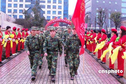 發(fā)表評論 2月25日下午,湖南省郴州市委、市政府、郴州軍分區(qū)舉行盛大儀式,歡送支援郴州抗冰救災的部隊官兵離開郴州,數(shù)萬市民冒著細雨前往郴州五嶺廣場為子弟兵送行。中新社發(fā) 賀茂峰 攝