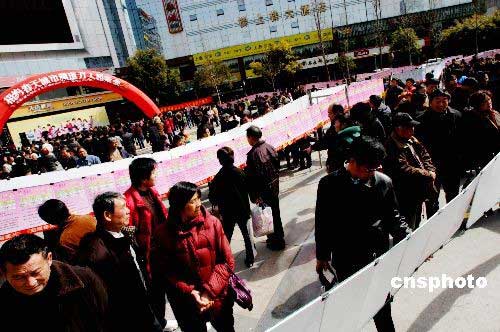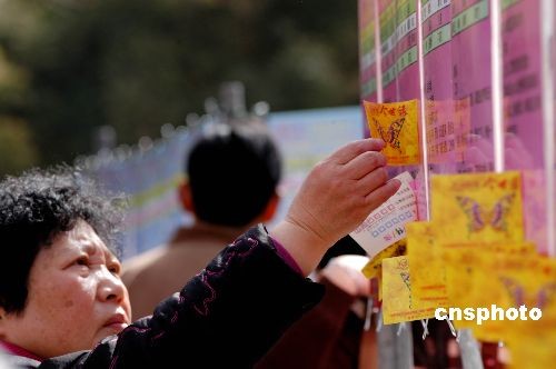 3月2日,江蘇鎮(zhèn)江市大市口廣場舉辦了“萬人相親”會活動,1000多個相親簡歷吸引了眾多市民。中新社發(fā) 陶春 攝
