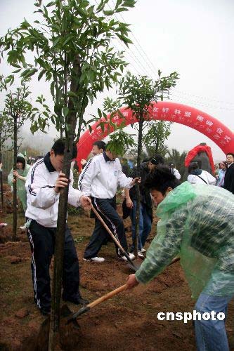 三月十二日是中國(guó)一年一度的植樹節(jié),正在重慶交流訪問的日本石川縣、滋賀縣、愛知縣高中生代表團(tuán)冒著濛濛細(xì)雨來到重慶永川,與永川中學(xué)高中生共同植下象征中日關(guān)系長(zhǎng)遠(yuǎn)發(fā)展的友誼之樹,并一道在剛剛植下的樹枝上掛上各自精心制作、寫著不同祝福的彩色卡片。中新社發(fā) 孫自法 攝