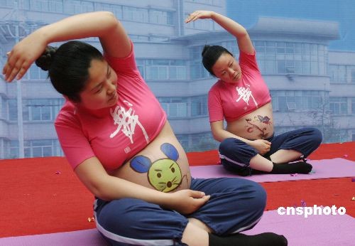 3月15日,眾多準(zhǔn)媽媽和在江蘇連云港市第一人民醫(yī)院展示母子康樂保健帶來的樂趣。經(jīng)過孕婦學(xué)校、孕媽咪沙龍、體功訓(xùn)練等孕前培訓(xùn)的準(zhǔn)媽媽大膽地在舞臺(tái)上舞動(dòng)身姿表演孕前保健操。中新社發(fā) 王健民 攝