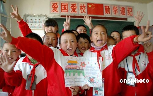 3月27日,拉薩市城關(guān)區(qū)吉崩崗小學(xué)四年級(jí)的學(xué)生表達(dá)熱愛(ài)祖國(guó)反對(duì)分裂的心情。拉薩“3.14”打、砸、搶、燒暴力事件發(fā)生后,西藏各界以各種方式紛紛表達(dá)對(duì)暴亂分子殘忍罪惡行徑的痛恨。中新社發(fā) 周波 攝
