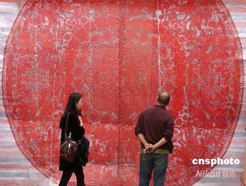 圖:巨型剪紙亮相洛陽牡丹花會(huì)
