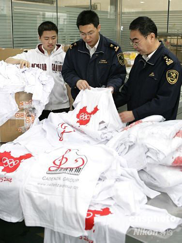 圖:北京海關(guān)查獲侵犯奧運(yùn)知識(shí)產(chǎn)權(quán)服裝