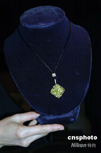 4月27日,香港佳士得2008春季拍賣(mài)精品在上海外灘茂悅大酒店預(yù)展。這場(chǎng)拍賣(mài)會(huì)將于5月22日至29日在香港會(huì)議展覽中心舉行。這次拍賣(mài)大約分為14個(gè)不同類(lèi)別,包括多件收藏珍品。在5月28日“瑰麗珠寶及翡翠首飾”專(zhuān)場(chǎng),拍品包括重67.09克拉的罕見(jiàn)黃鉆吊墜一對(duì),估價(jià)為1600萬(wàn)到2500萬(wàn)。中新社發(fā) 崔煜芳 攝