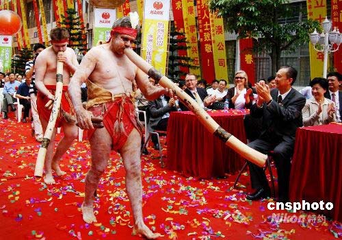 四月三十日上午,“泉州.澳洲文化節(jié)”活動(dòng)在福建泉州開幕。澳大利亞奧本市市長林麗華女士一行同當(dāng)?shù)仄髽I(yè)家和社會名流一起參加活動(dòng),旨在通過文化交流促進(jìn)中澳兩國的進(jìn)一步合作。圖為開幕式上表演的澳洲土著藝術(shù)文化。中新社發(fā) 傅丹丹 攝