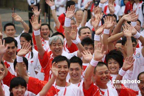 圖:圣火澳門傳遞 火炬手向觀眾致意