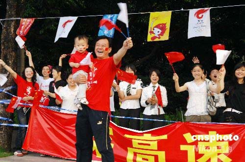 圖:深圳市民涌向街頭迎接奧運(yùn)圣火
