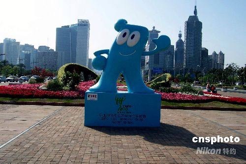 5月7日,上海浦東世紀(jì)廣場(chǎng)的“海寶”雕塑。一批批高大的由玻璃鋼材質(zhì)制成的“海寶”雕塑落戶(hù)在上海街頭和社區(qū),增添了“世博”的氛圍,成為一道亮麗的風(fēng)景。中新社發(fā) 周東潮 攝