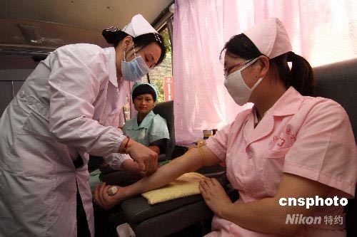 5月11日,湖南婁底市眼科醫(yī)院的護(hù)士在獻(xiàn)血。“5.12”國際護(hù)士節(jié),婁底市眼科醫(yī)院、婁底口腔醫(yī)院、東方醫(yī)院的100多位護(hù)士,在節(jié)日前無償獻(xiàn)血。中新社發(fā) 郭國權(quán) 攝