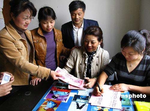 2008年5月14日上午,江蘇省大豐市電影站10多名員工主動向向四川地震災(zāi)區(qū)捐款3000多元,其中卞衛(wèi)民、劉海燕夫妻倆捐款1000元。當天下午,該市召開動員大會,發(fā)動群眾向四川地震災(zāi)區(qū)捐款獻愛心。昨天,該市紅十字會和慈善總會就收到市民捐款2萬多元,支援四川地震災(zāi)區(qū)。中新社發(fā) 周古凱 攝