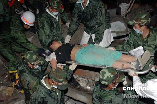 圖:武警官兵全力搜救北川中學(xué)被困學(xué)生