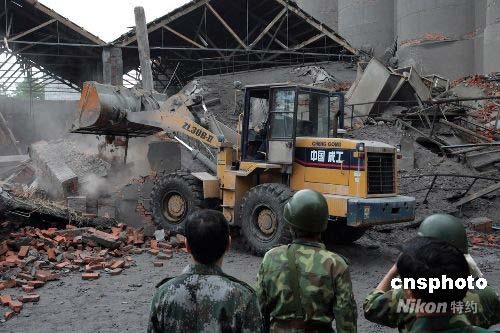 5月14日,據(jù)抗震救災(zāi)前線的最新消息,救援隊(duì)伍已經(jīng)進(jìn)入四川重災(zāi)區(qū)的所有市縣。圖為空降兵配合重型機(jī)械在什邡洛水拯救被掩埋的群眾。中新社發(fā) 譚超 攝