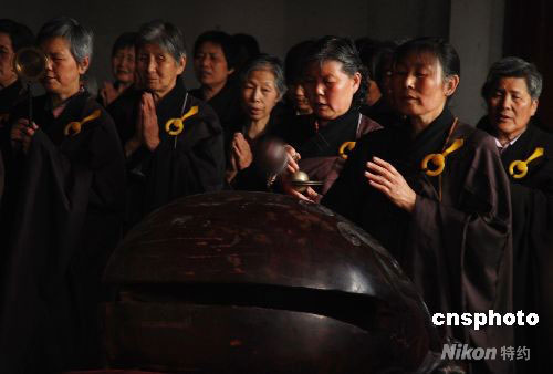 5月15日,江蘇無錫南禪寺舉行賑災(zāi)祈福吉祥法會。地震發(fā)生后,中國國家宗教局十三日立即向受災(zāi)地區(qū)捐款,同時向在北京的全國性宗教團(tuán)體等發(fā)出通知,號召他們緊急開展向地震災(zāi)區(qū)捐款活動。中新社發(fā) 楊慧峰 攝