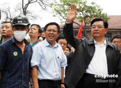 圖:胡錦濤抵達(dá)地震重災(zāi)區(qū)北川查看災(zāi)情