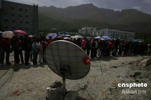 圖:茂縣開(kāi)通首臺(tái)衛(wèi)星電話千人排隊(duì)等候