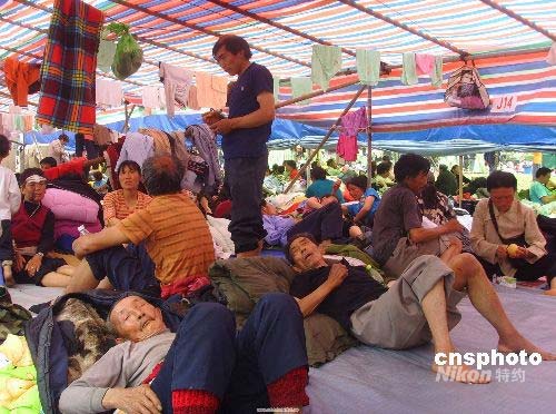 圖:綿陽地震災(zāi)民安置點災(zāi)民情緒穩(wěn)定