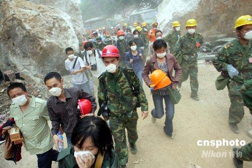 圖:北川余震不斷或有洪災(zāi)官兵群眾撤離