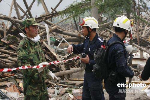 圖:四川官兵與新加坡國際救助隊(duì)救援