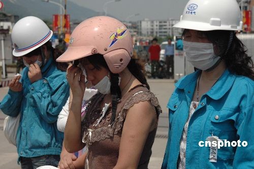 5月19日14時28分,中國全國人民為四川汶川大地震遇難者默哀3分鐘。四川綿竹漢旺鎮(zhèn)是汶川“5.12”8級大地震傷亡最慘重的地區(qū)之一。圖為東方汽輪機廠女職工在默哀會上泣不成聲。中新社發(fā) 肖龍聯 攝