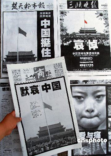 2008年5月20日是全國哀悼日的第二天,湖北《三峽商報》、《三峽晚報》、《楚天都市報》等多家報紙在頭版整版推出“默哀”圖片報道,向在四川大地震中遇難的同胞致哀。
