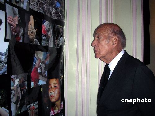 圖:法國前總統(tǒng)德斯坦悼念汶川遇難者