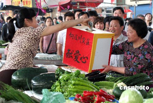 5月21日,浙江省德清縣個私協(xié)會乾元分會和乾元市場開發(fā)服務(wù)所工作人員協(xié)同市場各行業(yè)的經(jīng)營組長,發(fā)起向地震災(zāi)區(qū)人民獻(xiàn)愛心活動,得到市場內(nèi)近300名經(jīng)營戶的積極支持和參與,現(xiàn)場共收到愛心捐款一萬六千余元。四川的災(zāi)情牽動著浙江省德清縣長橋農(nóng)貿(mào)市場廣大經(jīng)營戶的心,截至發(fā)稿時止,廣大經(jīng)營戶捐款活動還在繼續(xù)。