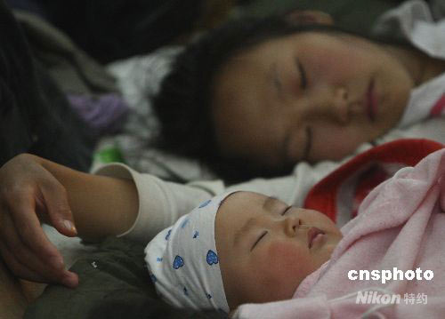 5月22日凌晨1時(shí),四川汶川大地震重災(zāi)區(qū)民眾約2萬(wàn)多人在綿陽(yáng)市九州體育館休息。中新社發(fā) 趙振清 攝